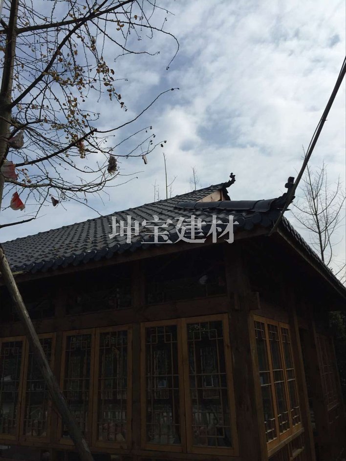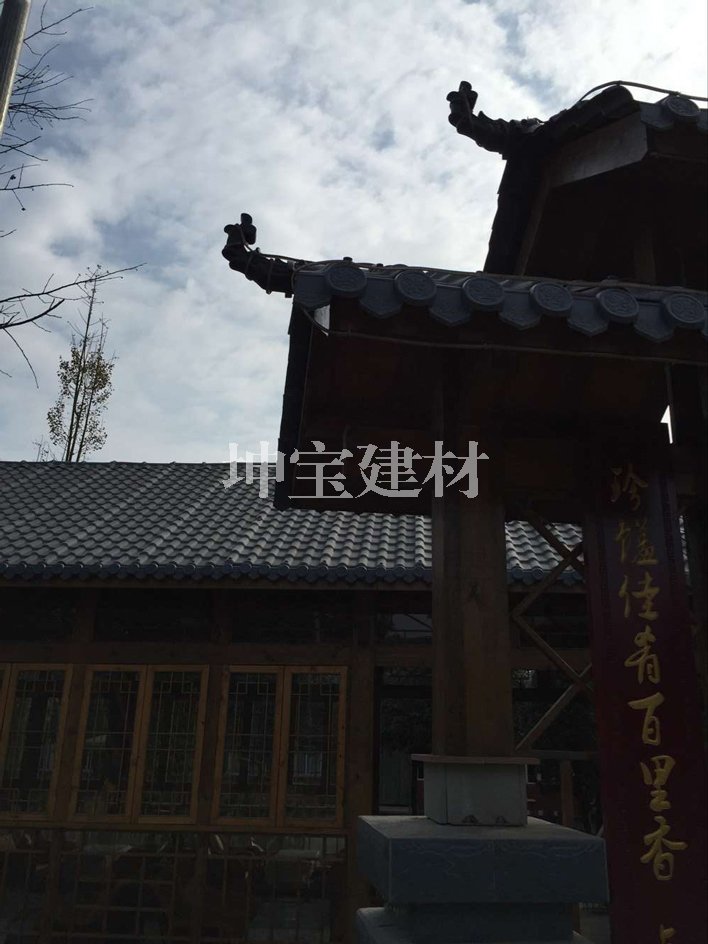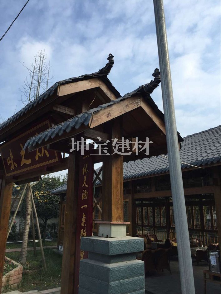 公司銷售人員接到一個農家樂老板的電話,讓我們到現(xiàn)場去看看,到了現(xiàn)場,是一家老牌的農家樂,現(xiàn)在考慮要翻修,所以屋面想采用這種新型的ASA樹脂瓦,老板跟我們銷售講了現(xiàn)場的一些規(guī)劃,仿古造型、配件這些都搞上,當天單子定了后第二天貨就拉到現(xiàn)場,緊接著開始施工,過了一個多星期后,老板給我們打電話說已經(jīng)搞好了,讓我們過去看下效果,到了現(xiàn)場老板高興的給我介紹了自家的農家小院,餐廳、休閑長廊、棋牌室都搞的非常不錯。還有個門牌坊也搞的很好。對我們的質量老板也是非常認可。