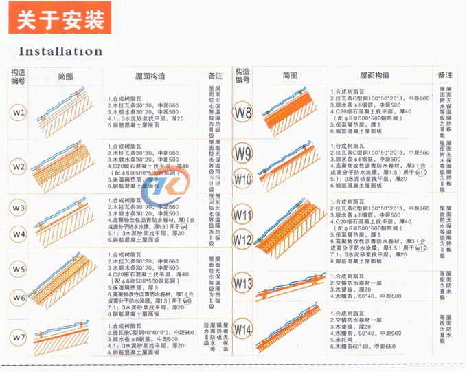 如果是自家屋面面積不是很大的情況下,安裝這塊也可以自己試試。按照廠家提供的安裝說明,實在不懂的也可以直接給銷售方打電話過去詢問,銷售方一般是會提供技術支持的。下面就給大家提供一張樹脂瓦的安裝說明,希望能夠幫到大家。