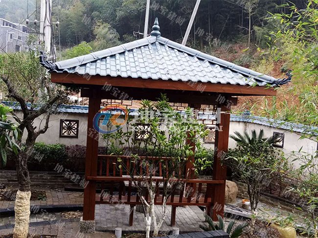樹脂瓦還有個名稱叫仿古樹脂瓦,樹脂瓦波峰的造型和小青瓦、陶土瓦相似,在其配件中,比如說吊檐更是融入了古風的元素。主瓦顏色上也可以做到一致。所以合成樹脂瓦在現(xiàn)代仿古建筑中的運用也非常廣泛。