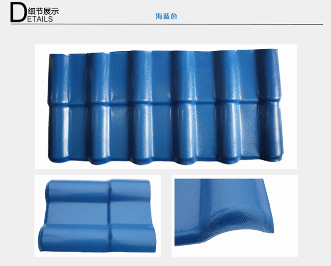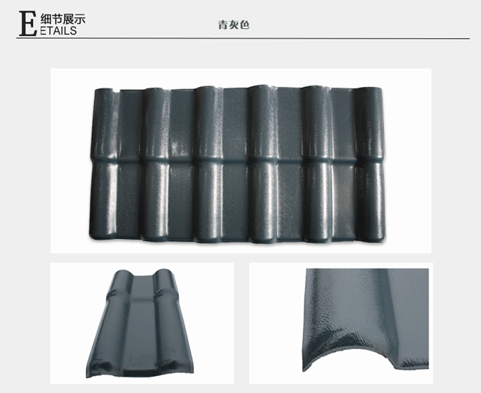 合成樹脂瓦所選用的高耐候性能樹脂本身致密且不吸水,不存在微孔滲水的問題。產(chǎn)品寬度比傳統(tǒng)瓦寬45%,屋面接縫少,因此合成樹脂瓦比傳統(tǒng)瓦的防水性能大大提高。