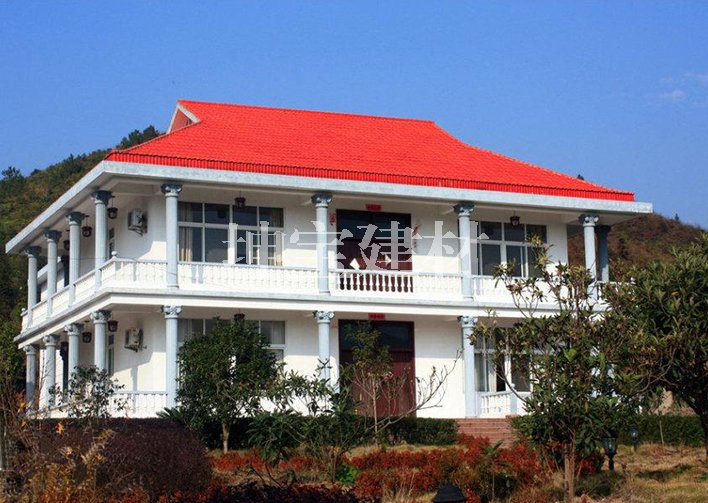 合成樹脂瓦用于移動房屋、平改坡、別野、園林閣樓的優(yōu)勢所在有以下幾點: